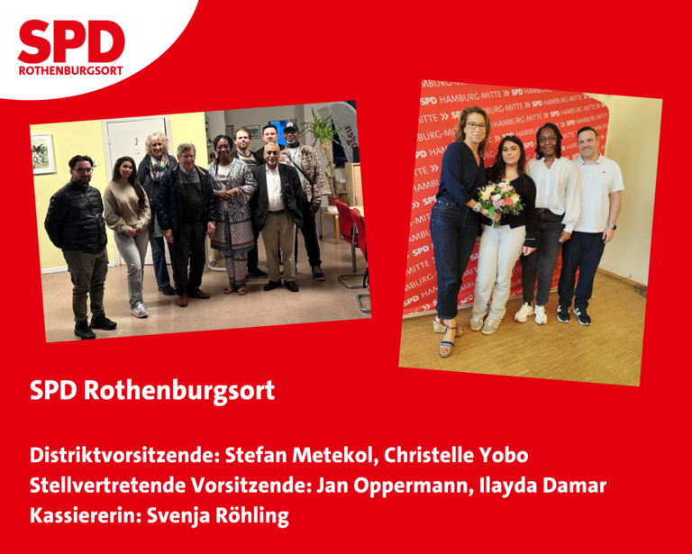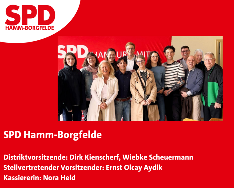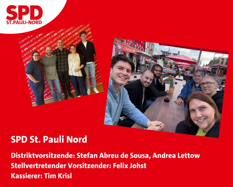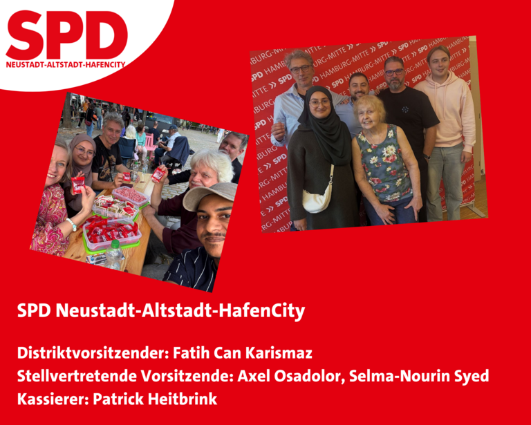 Zusätzlich gehören die Vorsitzenden unserer 13 Distrikte und unserer 6 Arbeitsgemeinschaften dem Kreisvorstand der SPD Hamburg-Mitte an